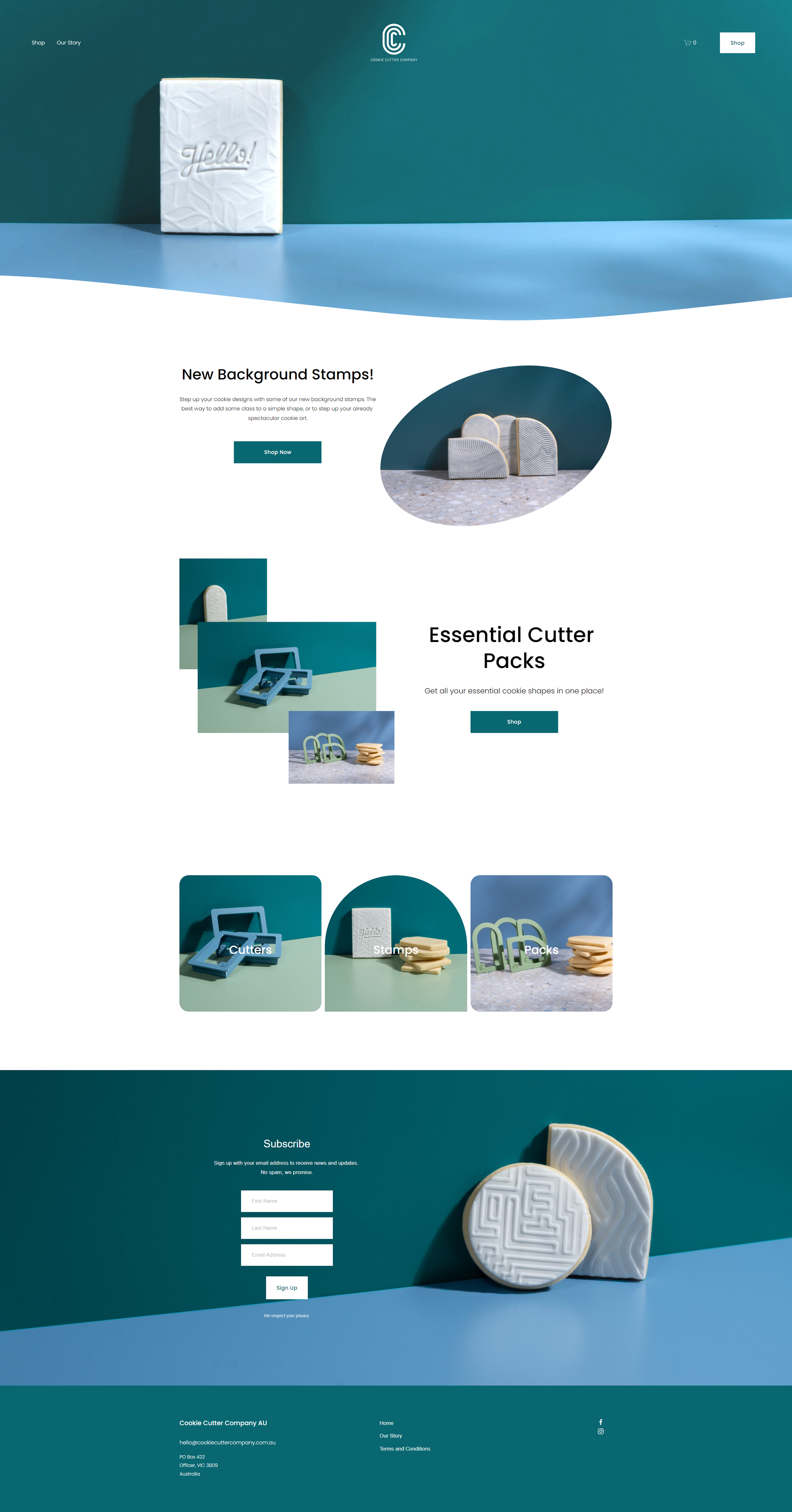Logo, branding, product photography and web design for a start-up 3D printed cookie-cutter company.